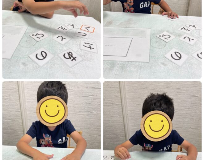 のりを塗る時は、一本指で塗ることという約束を説明しました!