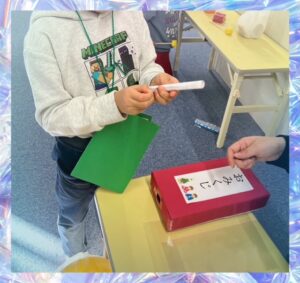 完成した顔を見て思わず笑ってしまう子どもたち😆