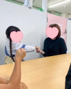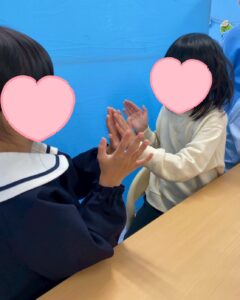 今回は、支援員やお友だちと向き合って、リズムに合わせてじゃんけんをしました✊