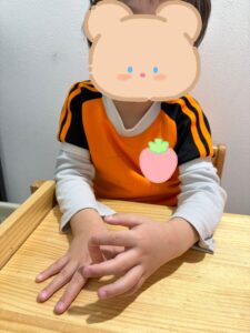 目を瞑って、何指を触られているか答えるゲームです☝️