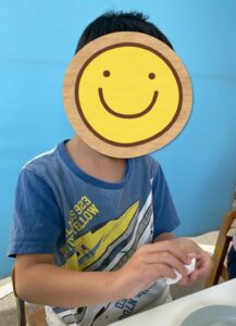 広げているうちに「破れちゃった!」と教えてくれる子。→「すごい頑張って広げようとできてたね!大丈夫乾いたらくっつけよう!」