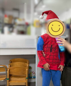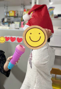ということで……取り組んでもらう時には、サンタさんの帽子を被ってもらいました