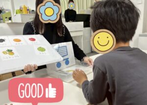 など、イラストや文字に気づいて支援員にカードを渡してくれましたよ