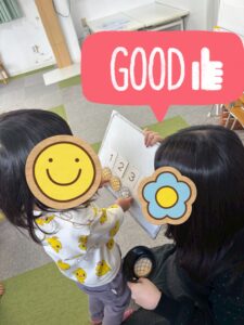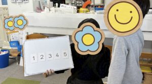 前回に引き続き、指定された数量のマッチングに取り組みました。今回は特に数を意識してもらうために、何個貼ったのかを発表してもらいました!