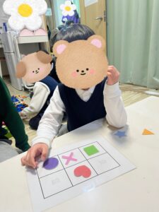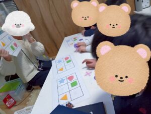 支援員が図形を貼るので