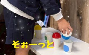 運び終わったボールは、紙コップの上に載せてもらいますよ🍀*゜