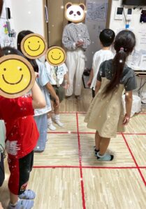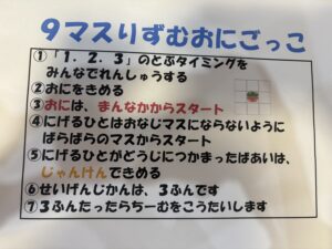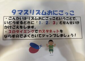 ・今回は、リズム鬼ごっこということで、移動する時に「1.2.3」と先生が掛け声をします