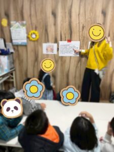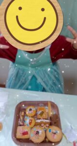 今回のお菓子ハウス作りでは、お友達のことも考え、使いすぎないようにお菓子を使うことを意識して取り組んでもらいながら、お友達の作ったものを見ることで新たな発見や他者意識を養うことをねらいとしています🎶