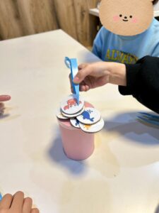 お友だちが筒に乗せるときは