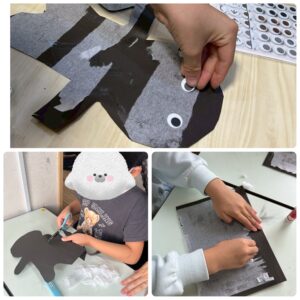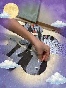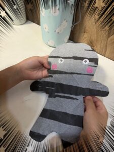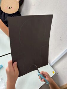 ⑤画用紙を裏向けてミイラの型にハサミで切る