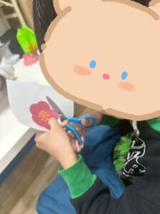 ①梅の花をハサミで切る