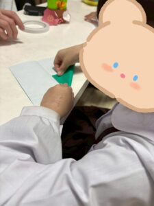 ③②の折り紙を両面テープで