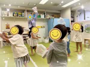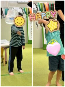 みんなでふくらまし、準備ができたら、いよいよ挑戦!