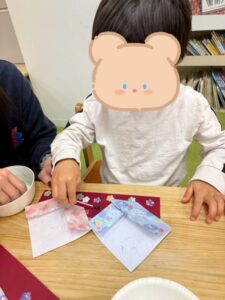 一度で折り方を覚えて2枚目を1人で折り紙を作ってくれる子もいましたよ✨