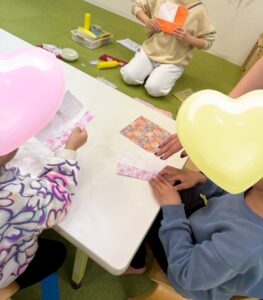 「”ちょびっと糊”でくっつけようね」と伝えるとそれぞれ量の調節を意識してくれていました。