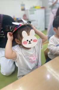 最後はうさぎさんの帽子を被って前に出て発表しました