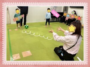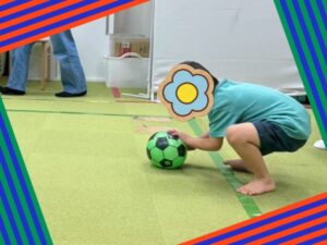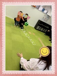 最初は支援員が転がす方向にいる子どもの