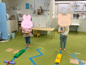 「これの上を歩くのー」と支援員の話をしっかり聞いてくれていました✨✨