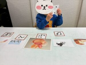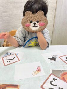 子どもの段階によって、ひらがなで行ったりカタカナで行ったり、なじみのある物からあまりなじみのない物を取り入れてさまざまな言葉を覚えていってもらえたらと思います♪