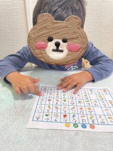 50音に慣れてるまでは、イラストつきの表にして子どものすきなものについて聞いたりしながら少しずつ興味を持ってもらうようにします