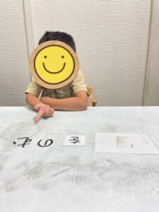 今回は、1種類の写真カードを置いたまま、助詞を変えていきました。