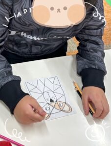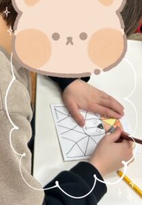 今回は、マス目のあるクマの塗り絵に取り組みました。