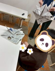まずは、新聞紙で兜を折りました❗️