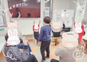 ゲームを通して、お友だちの動きをよく見て考える姿や、みんなで同じ動きをして楽しむ姿が見られました。