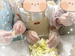 焼きそばチームは、キャベツをちぎるところからスタート🥬