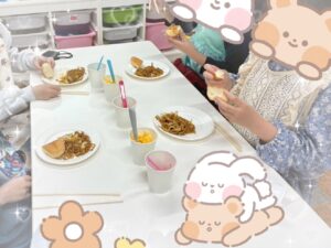 焼きそばやたまごサラダは手作りし、二つのグループに分かれて協力して行いました✨