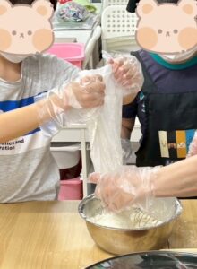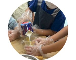 卵を割る、牛乳を量る、粉を入れるなど役割分担をして取り組みました🥚🥛✨