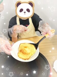 「これくらい?」「広げなくてもいいかな」など、それぞれのこだわりを持ちながら取り組みました🍳