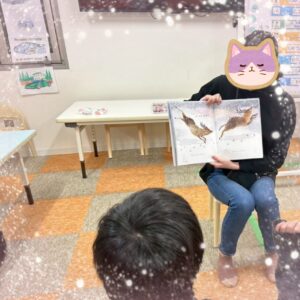 支援員が、絵本を持って座っていると、