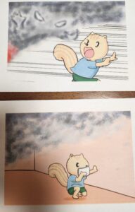 【コロコロ】と転がって衣服に着いた火を消す前に、