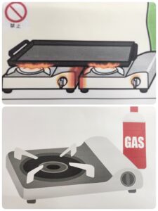 まずは、カセットコンロとガスボンベのイラストを見てもらい