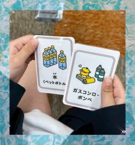 防災備品のイラストカードを2枚ずつ配りました🃏