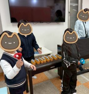 順番を受け入れて、友達の音に集中しょうとするみんなです