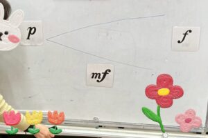 次に、ウクレレで「クレシエンド→だんだん大きく」を実践
