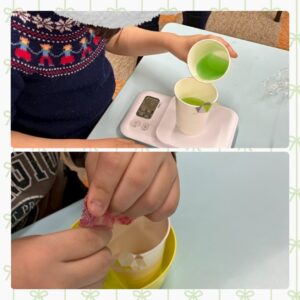 ②液体石鹸を60g測ります