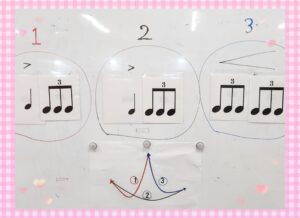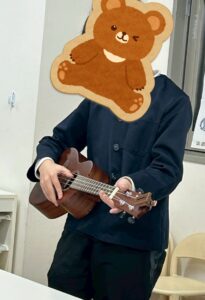 ・ウクレレで同じ弦を3回はじき、3拍子を身体で感じる
