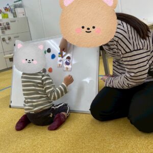 「次は青色だよ」と優しく声をかけて