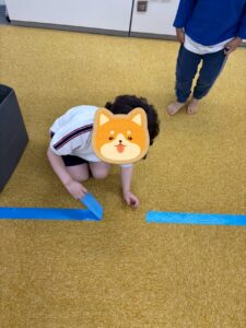 フロアを見渡してどこにテープがあるのか探すことで注意力が育ちます🧠