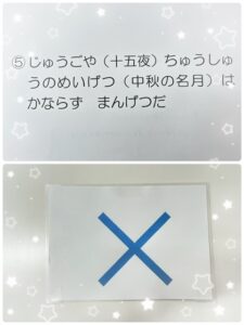 十五夜や中秋の名月について、◯か✖️で答えながら学びました。
