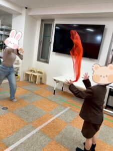 ふわっと空中に投げたスカーフをキャッチします🎵