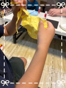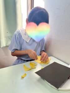 ②力加減を意識して画用紙をちぎっていく工程には