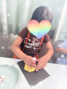 最初に画用紙を柔らかくするために