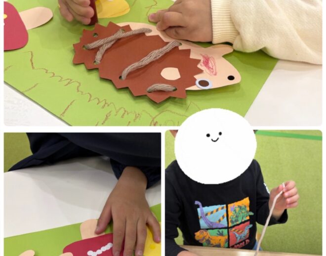 こんにちは! ハッピースマイル南堀江です 今日は《ハリネズミ制作》の活動の様子をお伝えしたいと思います 制作では、 ️季節の制作に触れる。 ️糸通し練習をする。 þ..