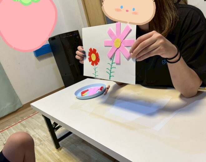 こんにちは☺️ ハッピースマイル北堀江です✨️ 今日は、コスモス制作について お伝えします🌈 まずは、公文です🍀..