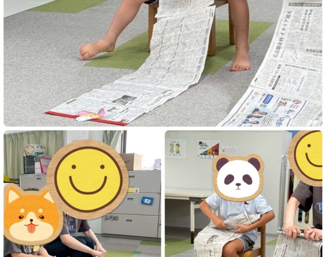 こんにちは ハッピースマイル北堀江です 今日はまきまき新聞紙ゲームの 様子をお届けしたいと思います この活動では 手先指先の運動 協調運動 感触を楽しむ 集中力を鍛える などをねらいとし..