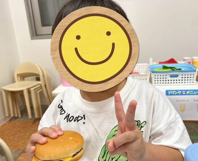 こんにちは🍀 ハッピースマイル南堀江です😊✨ 今日はみんなが楽しみにしていた 祝日のミニイベント「ハンバーガー屋さんごっこ」 の様子をお伝えします..